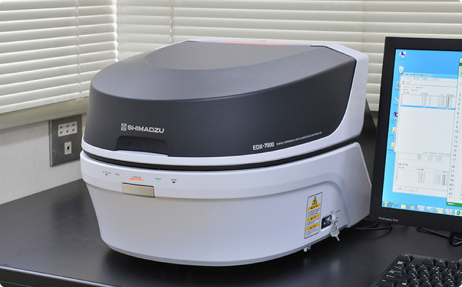 試料にX線を照射し、発生する蛍光X線のエネルギーを測定することで、含まれる元素の定性分析を行います。